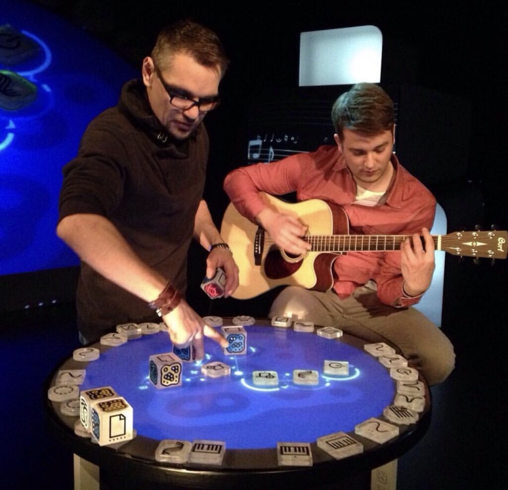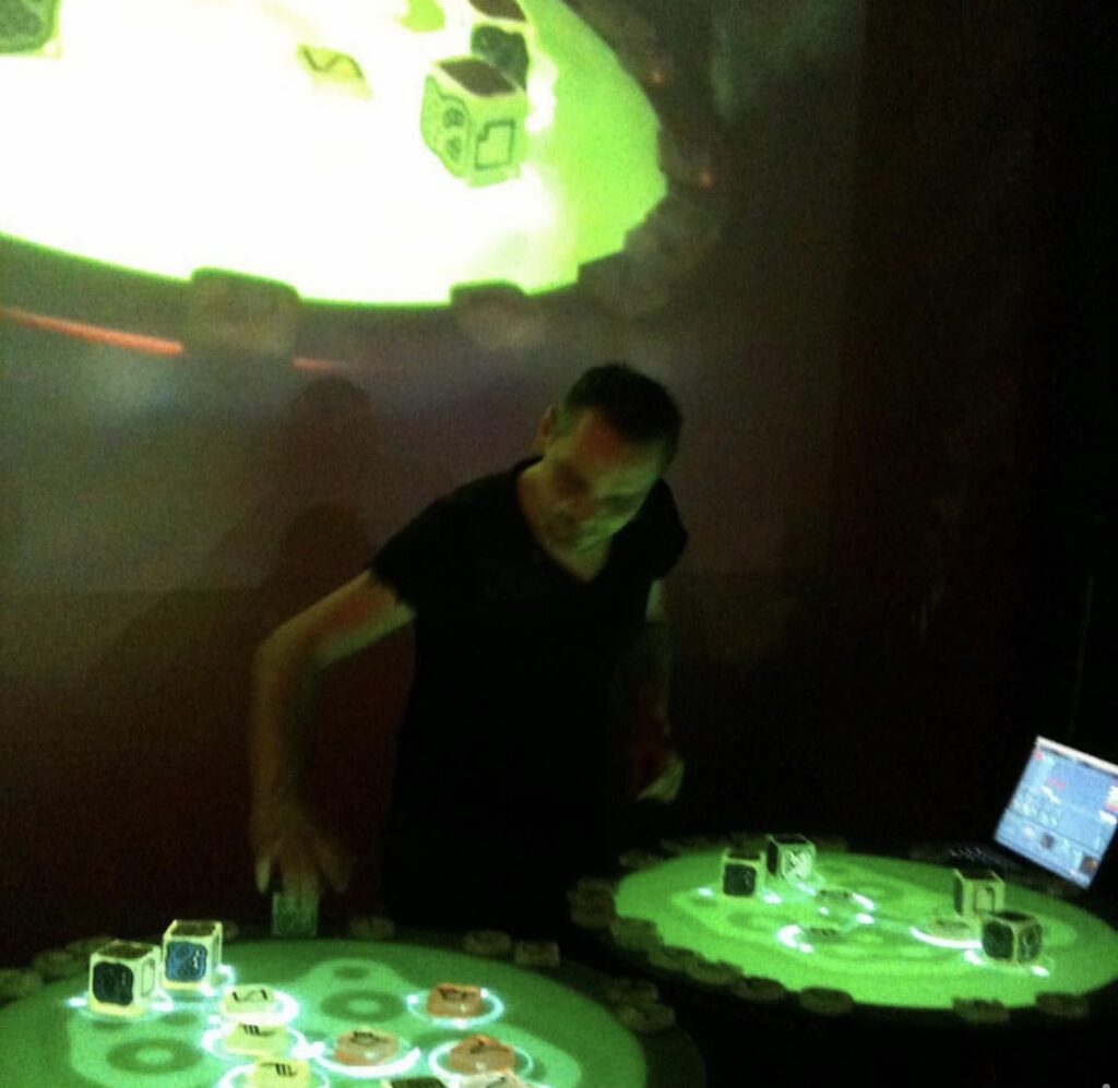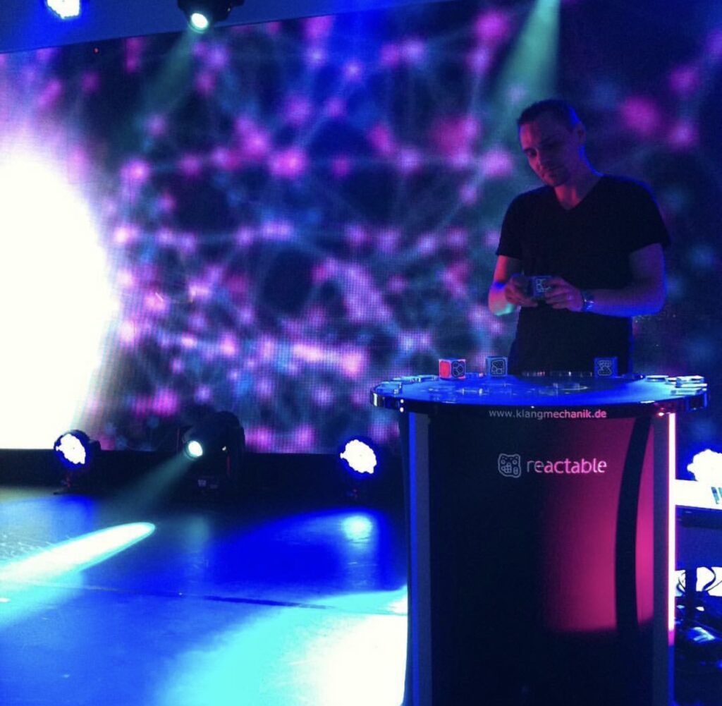 Entdecken Sie beeindruckende Fotos und Videos meiner Reactable Live-Performance, die moderne Kunst und Technologie eindrucksvoll verbinden.